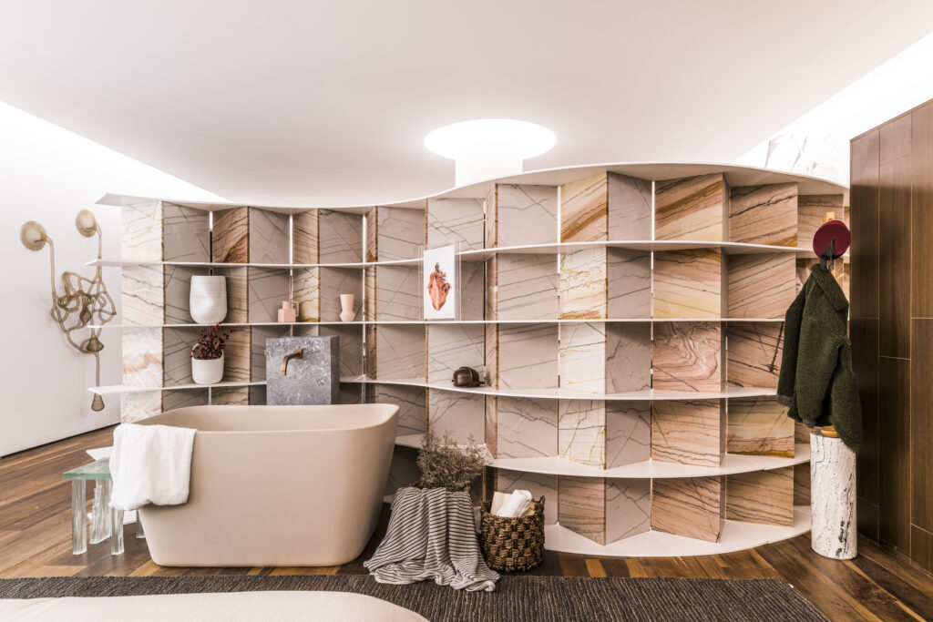 No Negroni, os veios marsala conferem personalidade à pedra, tornando-a ideal para projetos que buscam aliar funcionalidade e impacto visual. Com acabamentos versáteis e aplicação tanto em áreas internas quanto externas, o quartzito harmoniza com paletas neutras ou ousadas, adaptando-se a diferentes estilos de design.
